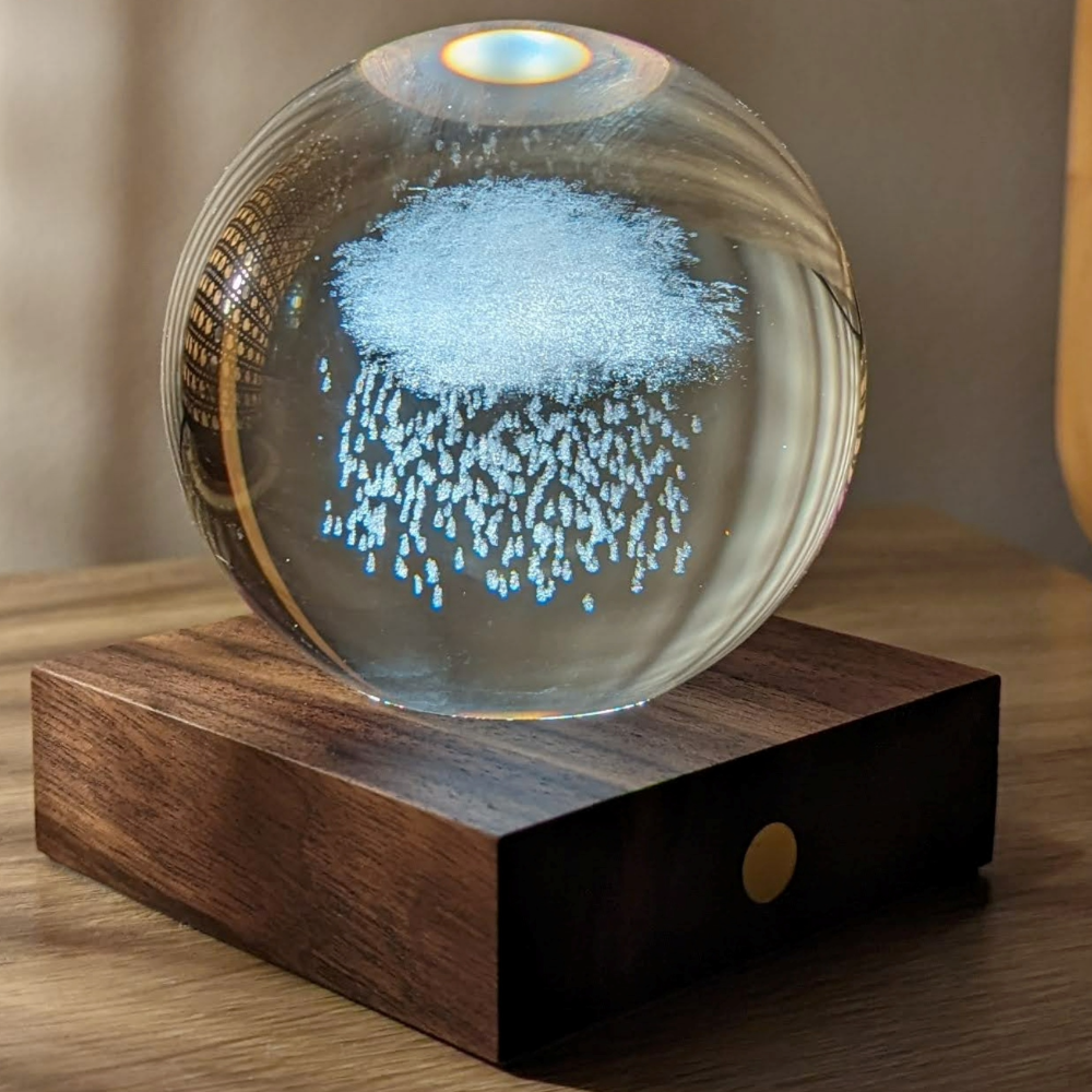 Now with the new Gingko Rain Cloud desk light, you can enjoy a magnificent storm cloud safely encased within the Amber Crystal sphere.