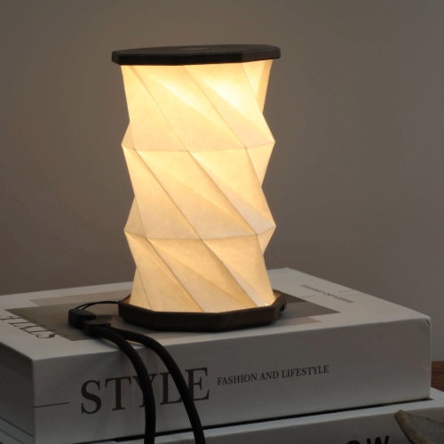 New for 2025, the Mini Hexagon Twist Light in Walnut Drift finish from Gingko Design, brings up to 8 hours of gentle warm light to any corner of your home or office or bedroom.