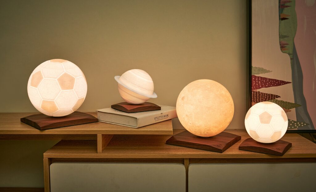 Joining the existing range of Gingko lamps and globes, the new Gingko Large Smart football lamp is an attractive 3D printed football lamp which spins on it’s attractive Walnut wood base.