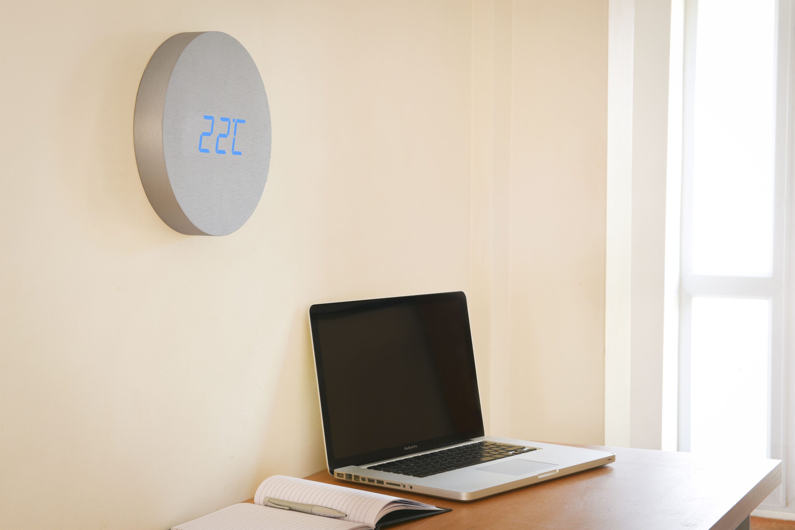 Powered by a built in 2500mAh rechargabe battery, the Gingko wall click clock has enough power to run for 7 days with the display on permanently or up to three months in sound activated mode. Now you have the freedom to place your wall clock where you want it without unsightly wires